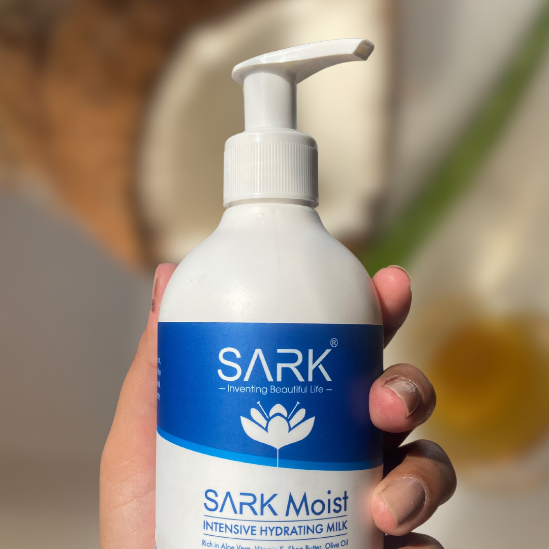 Introducing SARK Moist, a luxurious hydrating milk lotion infused with shea butter, coconut oil, and aloe vera. Perfect for year-round use, this formula deeply nourishes and hydrates your skin, leaving it soft, smooth, and radiant. Experience the ultimate in skin hydration with SARK Moist.